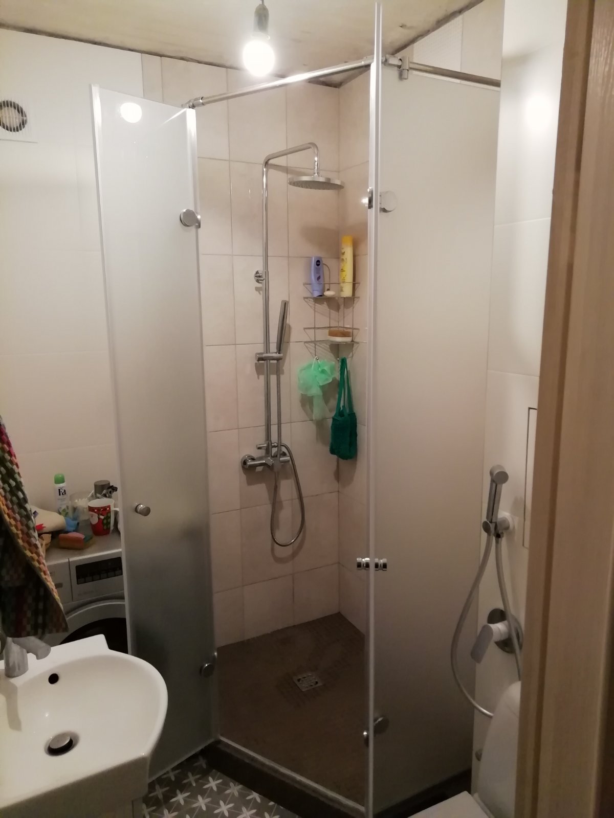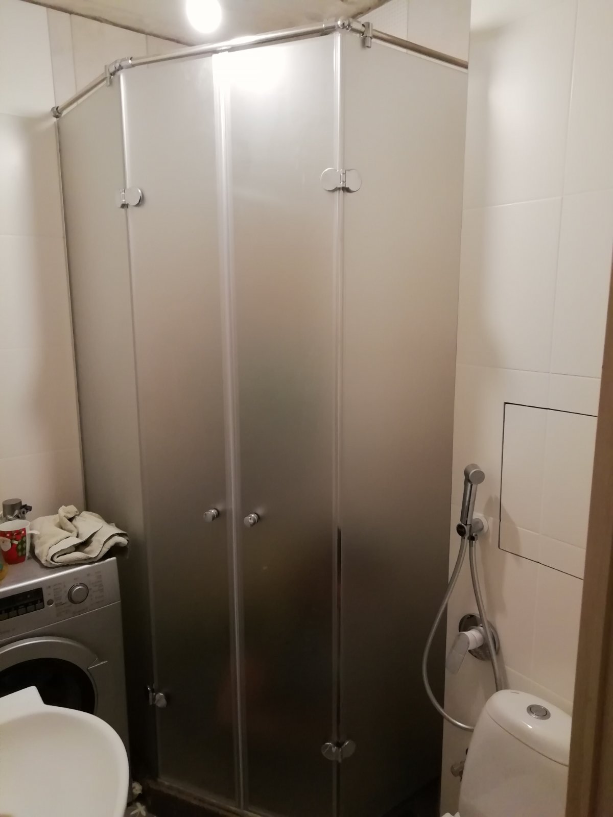 Двухстворчатая трапециевидная душевая кабинка из стекла