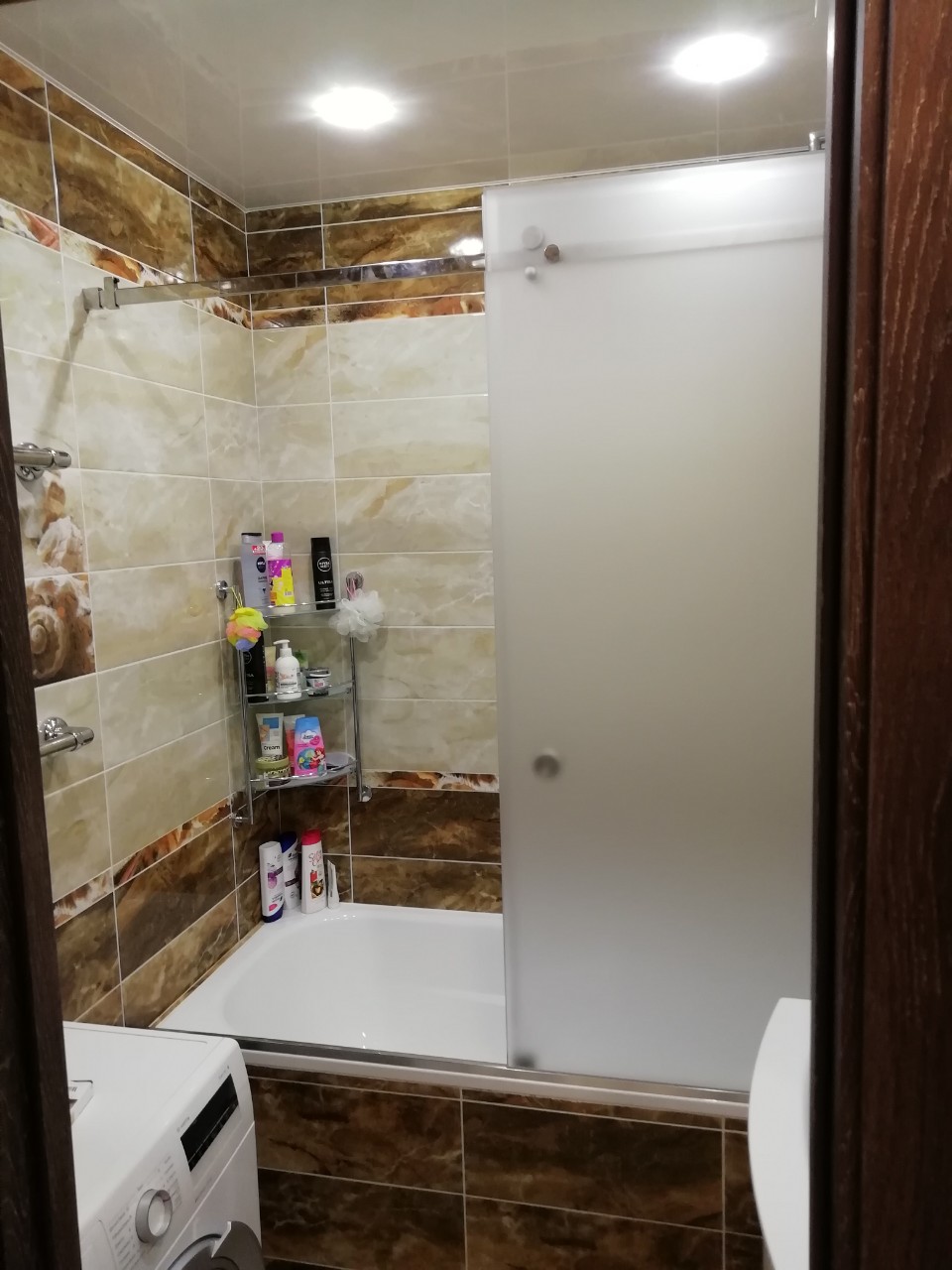 Двухстворчатая шторка для ванны с радиусным углом из стекла