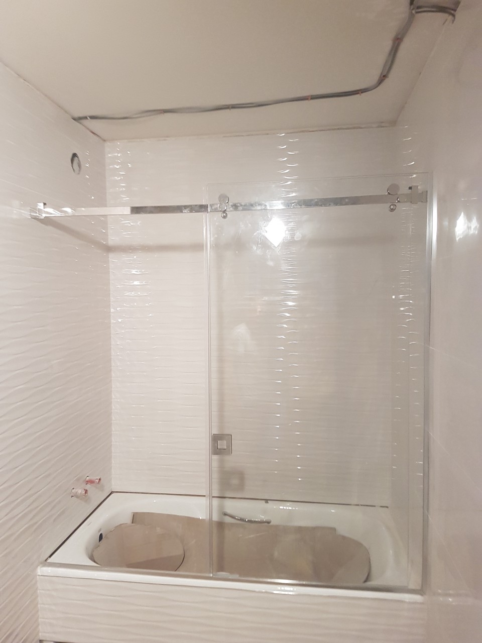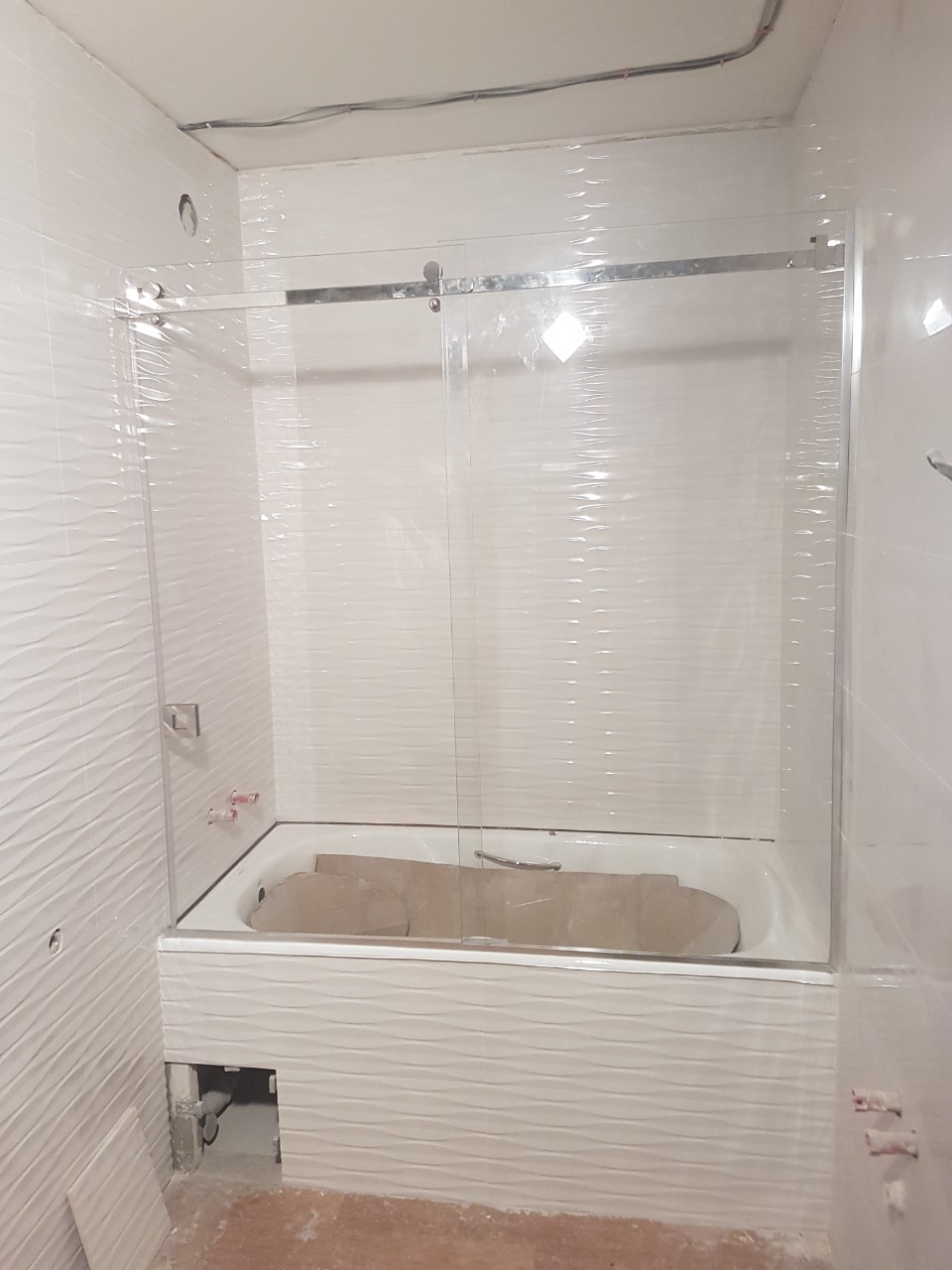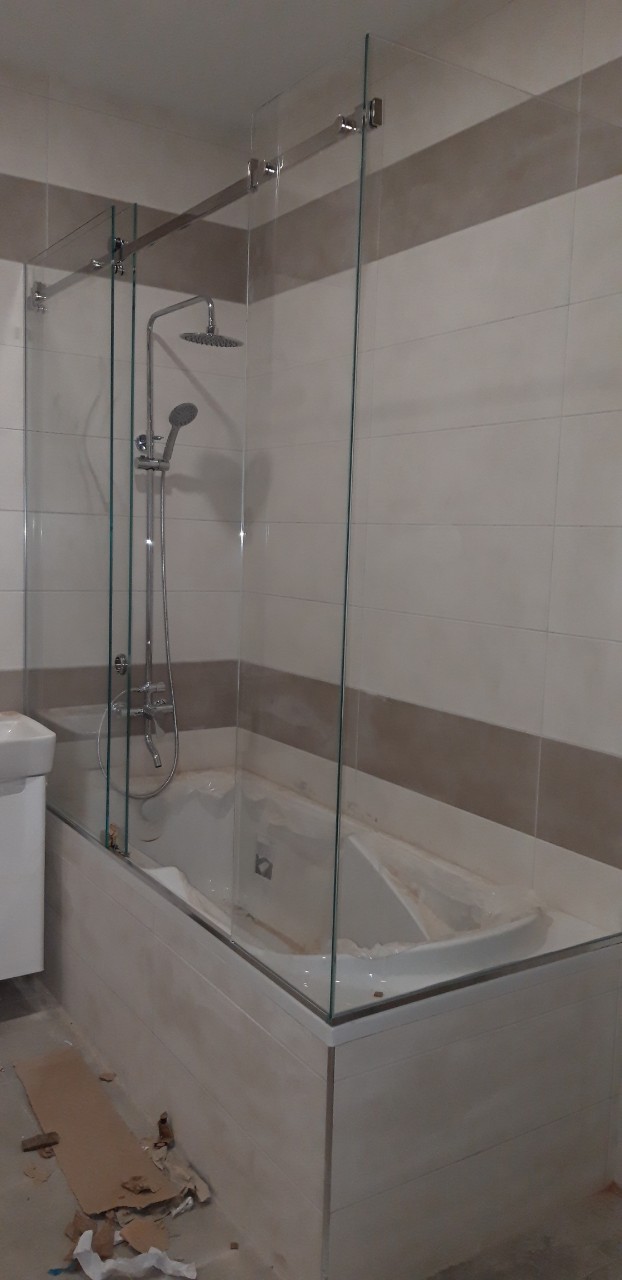 Ограждение для ванны с раздвижными дверями из закаленного стекла толщиной 8мм изготавливается на заказ по индивидуальным размерам и особенно актуально при расположении ванны или джакузи в проеме между стен. Конструкция с дверями раздвижного типа "слайдер" по принципу действия напоминает обычный шкаф-купе и не требует дополнительного пространства вокруг себя. В закрытом состоянии ванна имеет вид герметичного бокса, огражденного со всех сторон и эффект сауны Вам обеспечен.