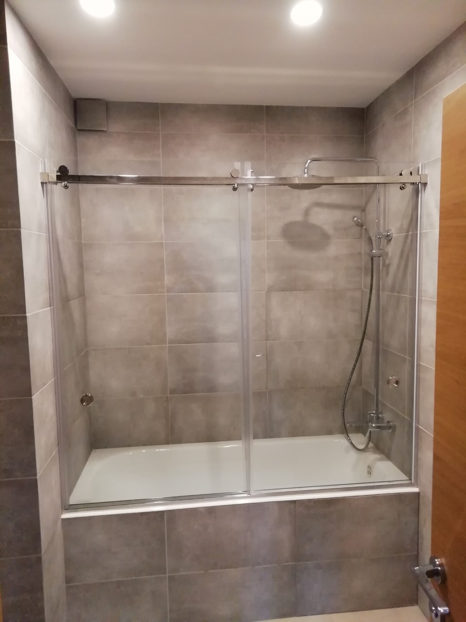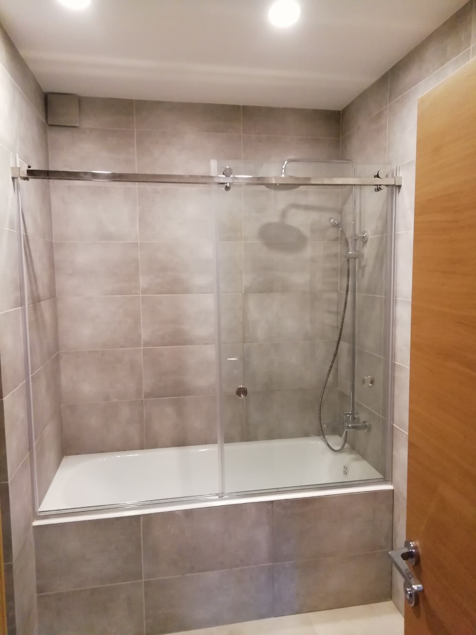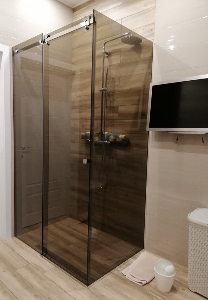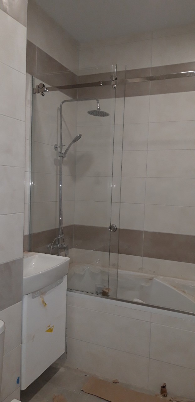 Ограждение для ванны с раздвижными дверями из закаленного стекла толщиной 8мм изготавливается на заказ по индивидуальным размерам и особенно актуально при расположении ванны или джакузи в проеме между стен. Конструкция с дверями раздвижного типа "слайдер" по принципу действия напоминает обычный шкаф-купе и не требует дополнительного пространства вокруг себя. В закрытом состоянии ванна имеет вид герметичного бокса, огражденного со всех сторон и эффект сауны Вам обеспечен.