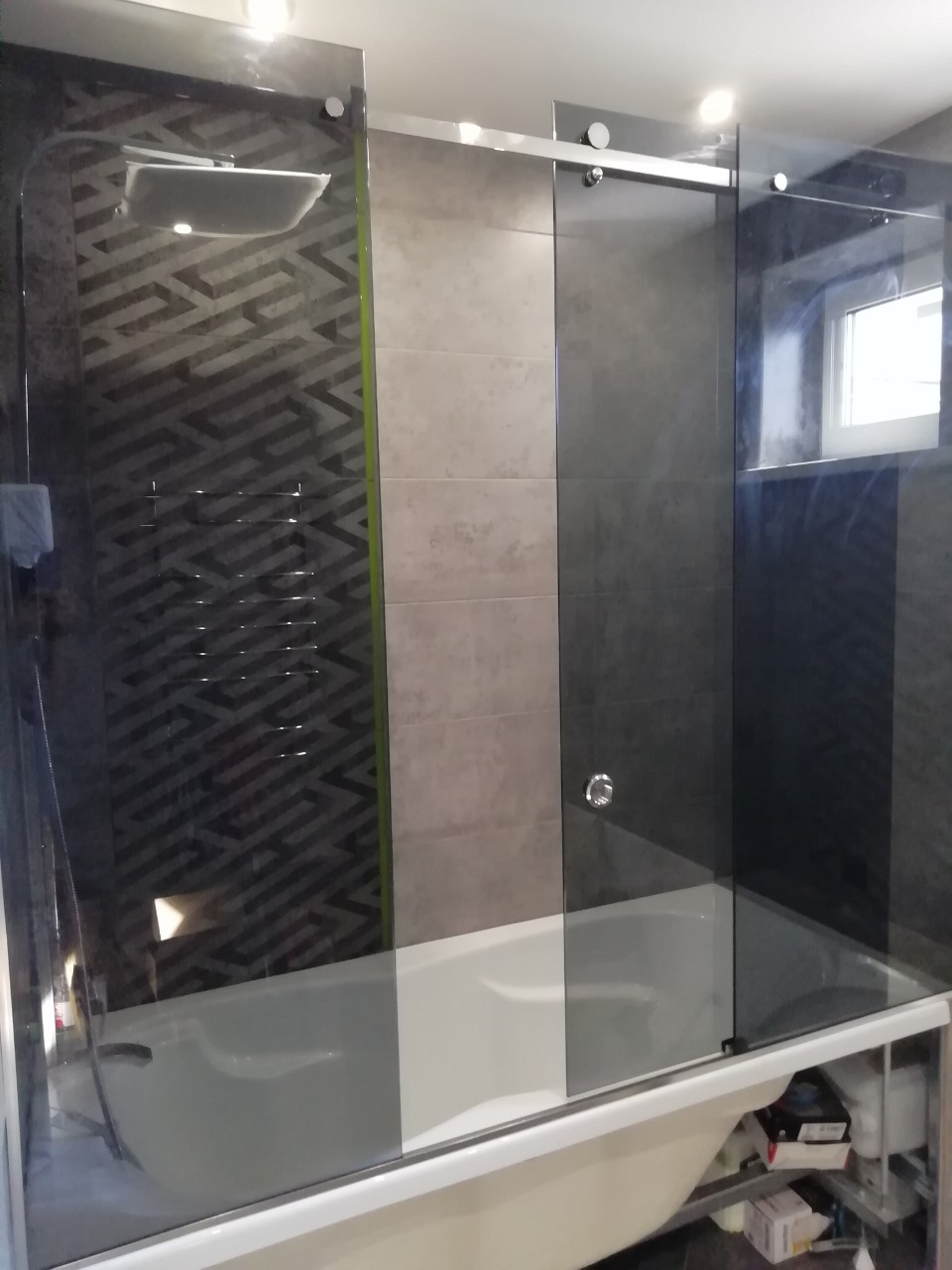 Г-образная раздвижная/распашная штора для ванны из стекла