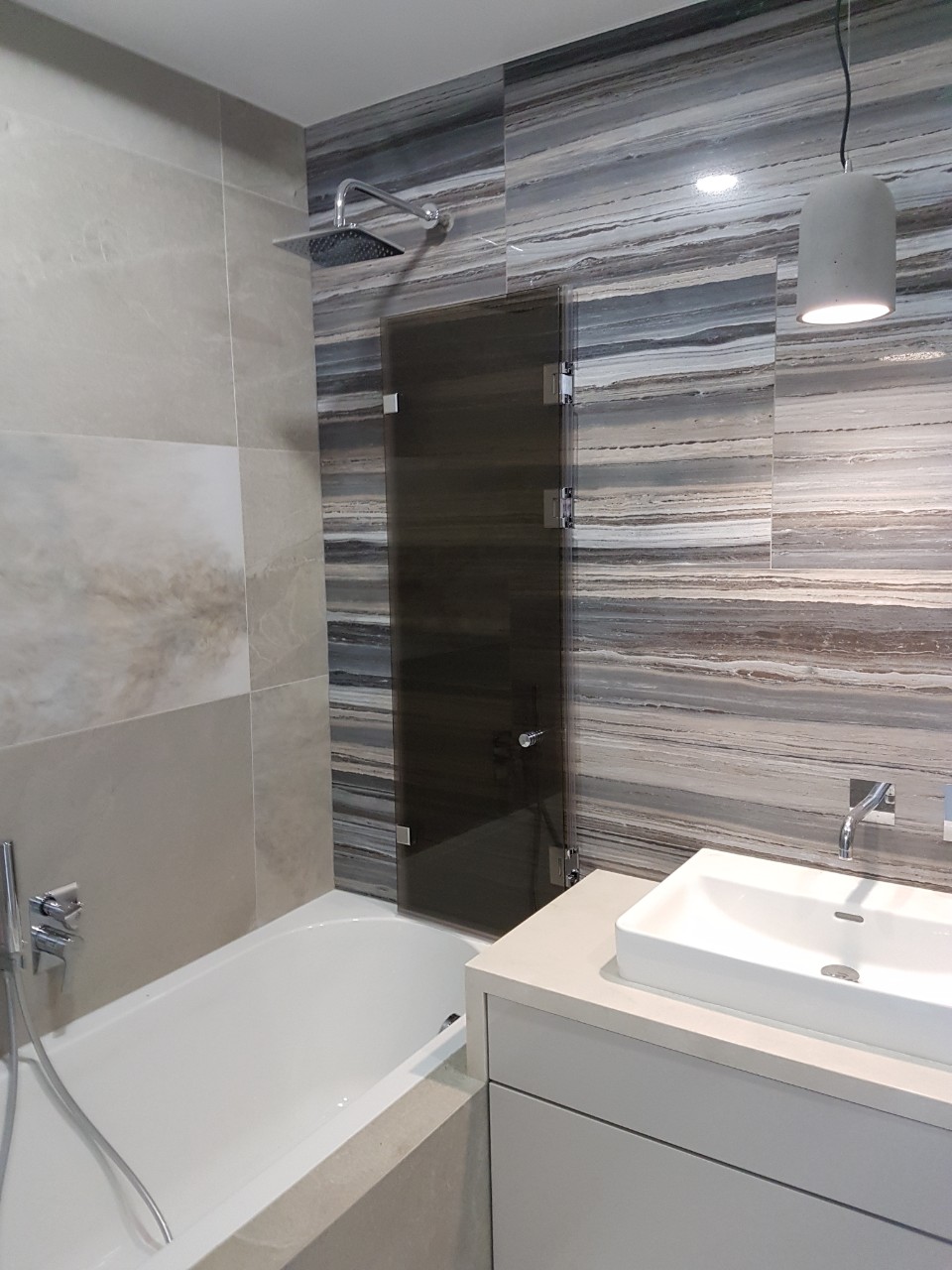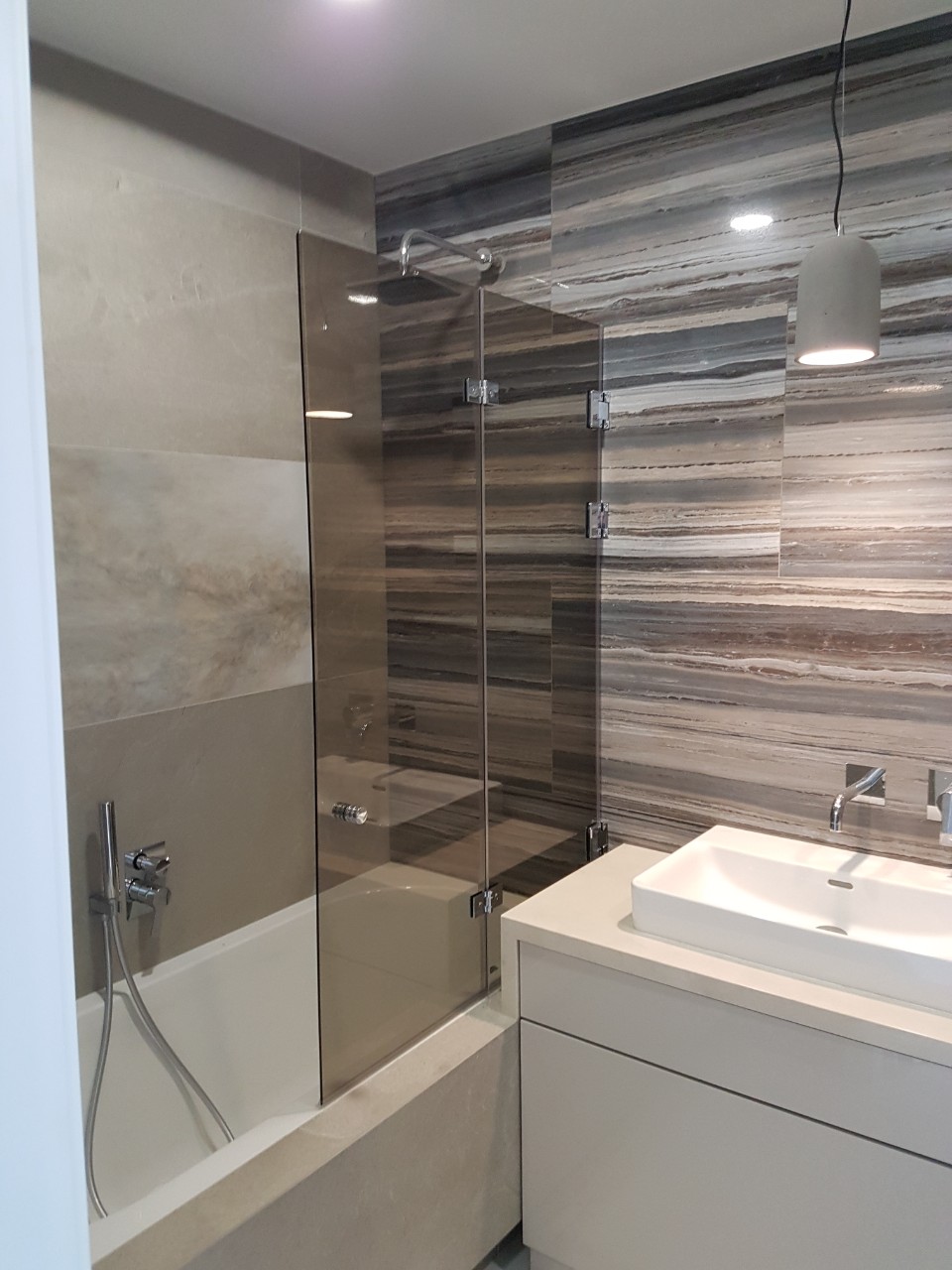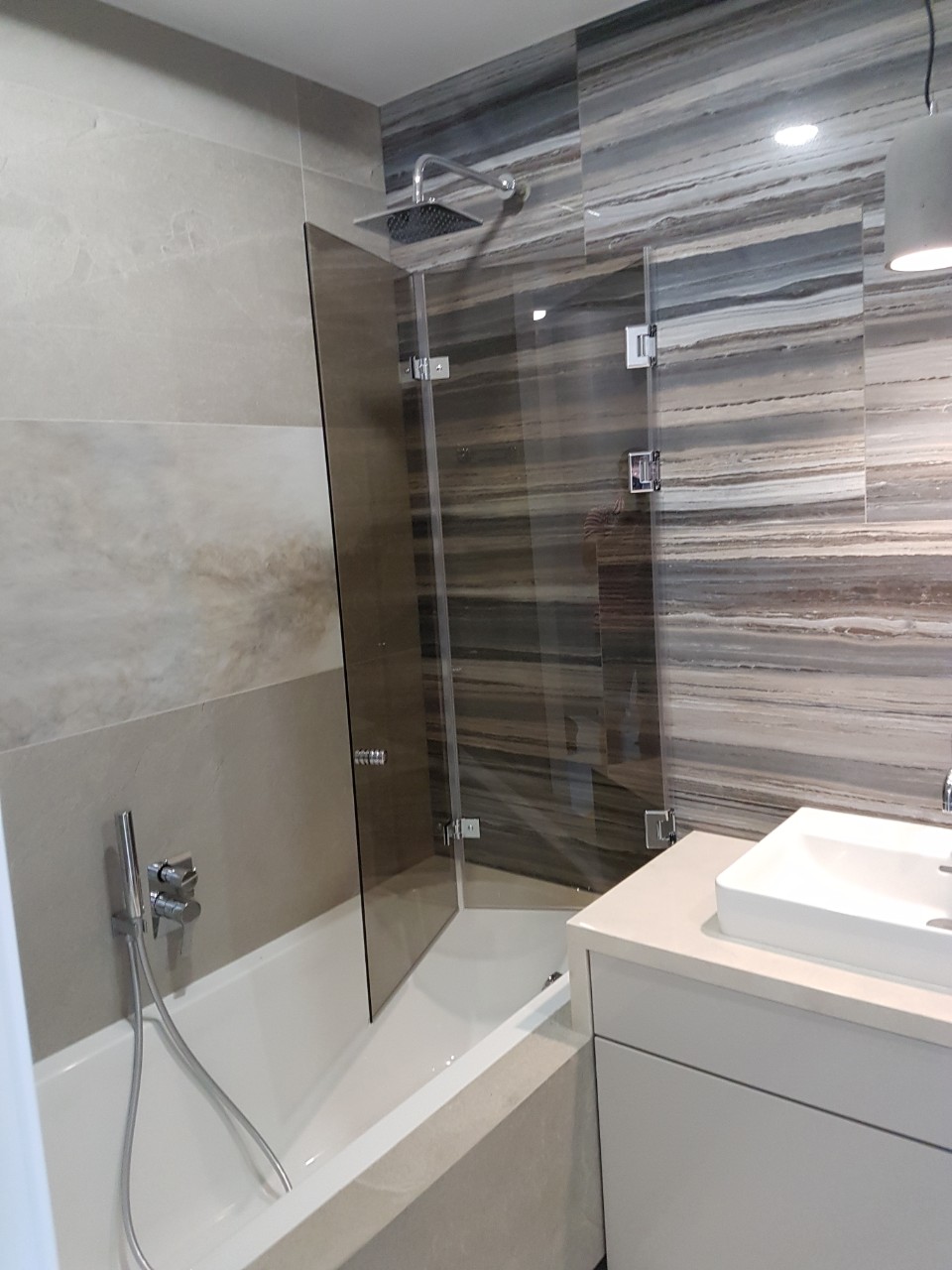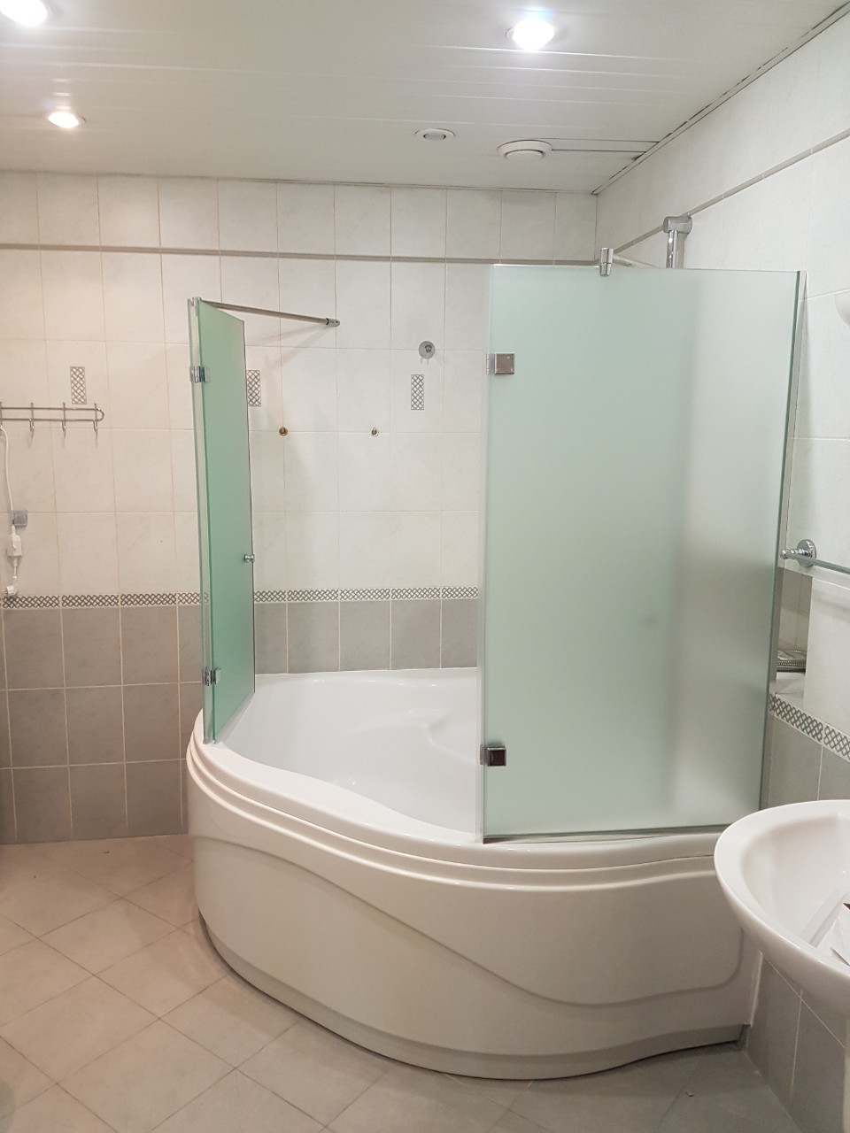 Стеклянное ограждение для ванны комплектуется стильной и высококачественной фурнитурой из латуни и нержавеющей стали, которая отлично гармонирует с керамической плиткой и другими видами современной отделки. Широкий ассортимент дизайнов и цветов: хром, матовый хром, бронза, с напылением под золото, черный и пр. удовлетворит любой самый взыскательный вкус. Исполнение заказа возможно не только из обычного стекла, но и осветленного, тонированного, матового, в том числе с применением художественной пескоструйной обработки либо гравировки, по желанию Заказчика.