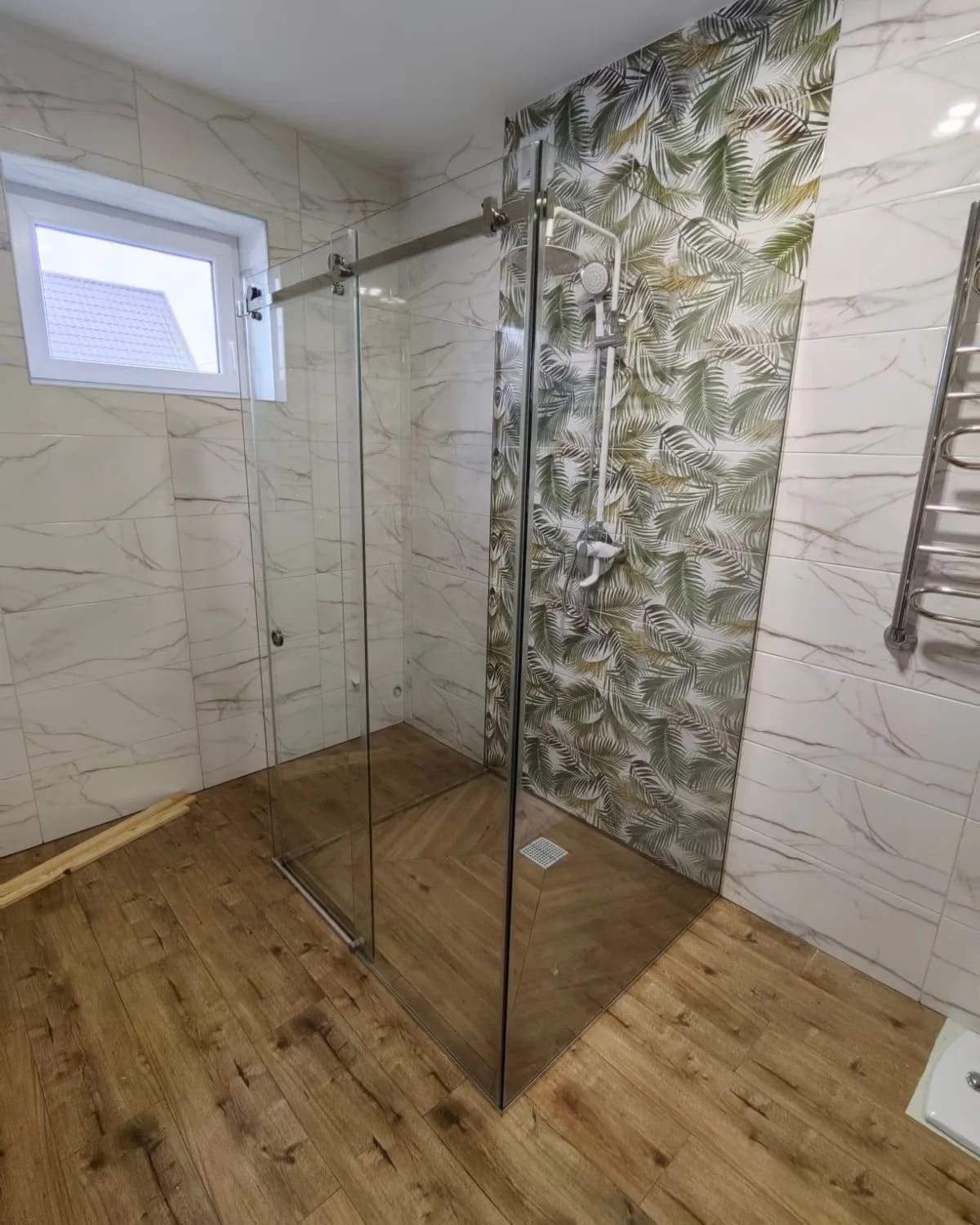 П-образная прямоугольная душевая кабина из стекла