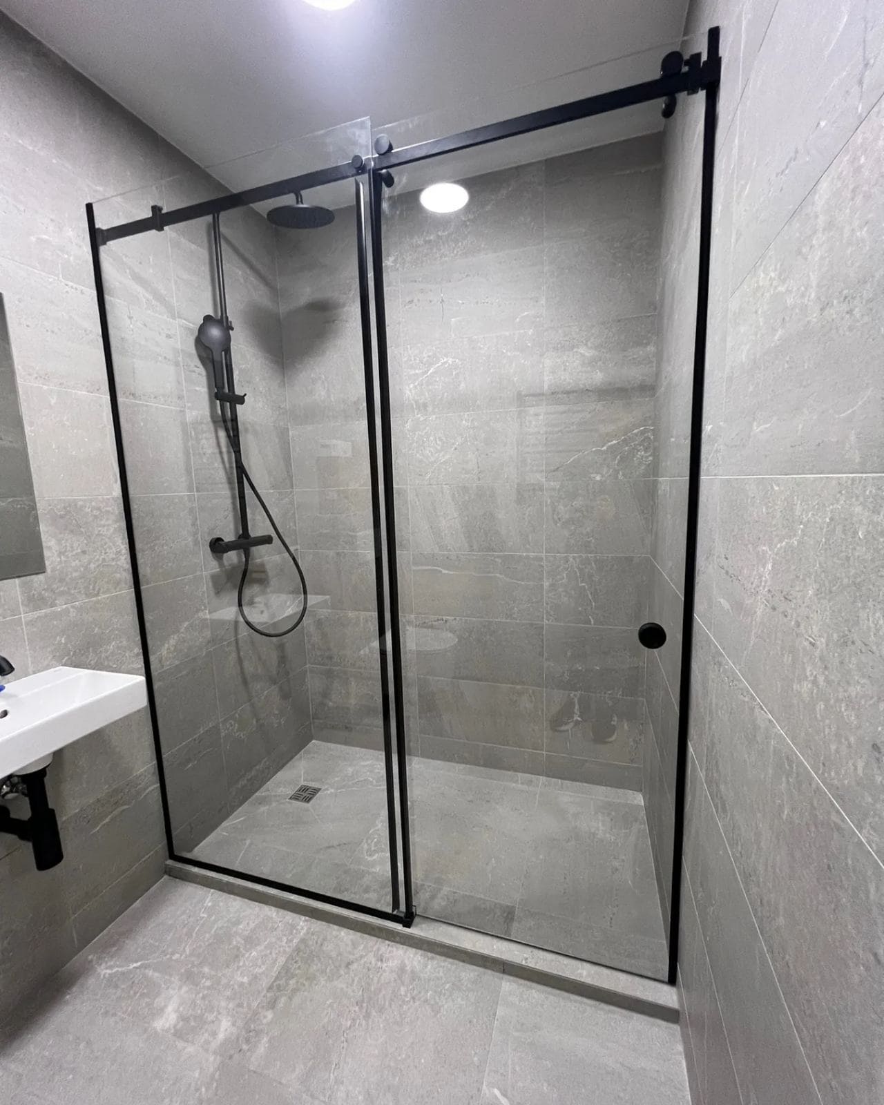 Прямая стеклянная душевая кабина с распашной (раздвижной) дверью комплектуется стильной и высококачественной фурнитурой из латуни и нержавеющей стали, которая отлично гармонирует с керамической плиткой и другими видами современной отделки. Широкий ассортимент дизайнов и цветов: хром, матовый хром, бронза, с напылением под золото, черный и пр. удовлетворит любой самый взыскательный вкус. Исполнение заказа возможно не только из обычного стекла, но и осветленного, тонированного, матового, в том числе с применением художественной пескоструйной обработки либо гравировки, по желанию Заказчика.