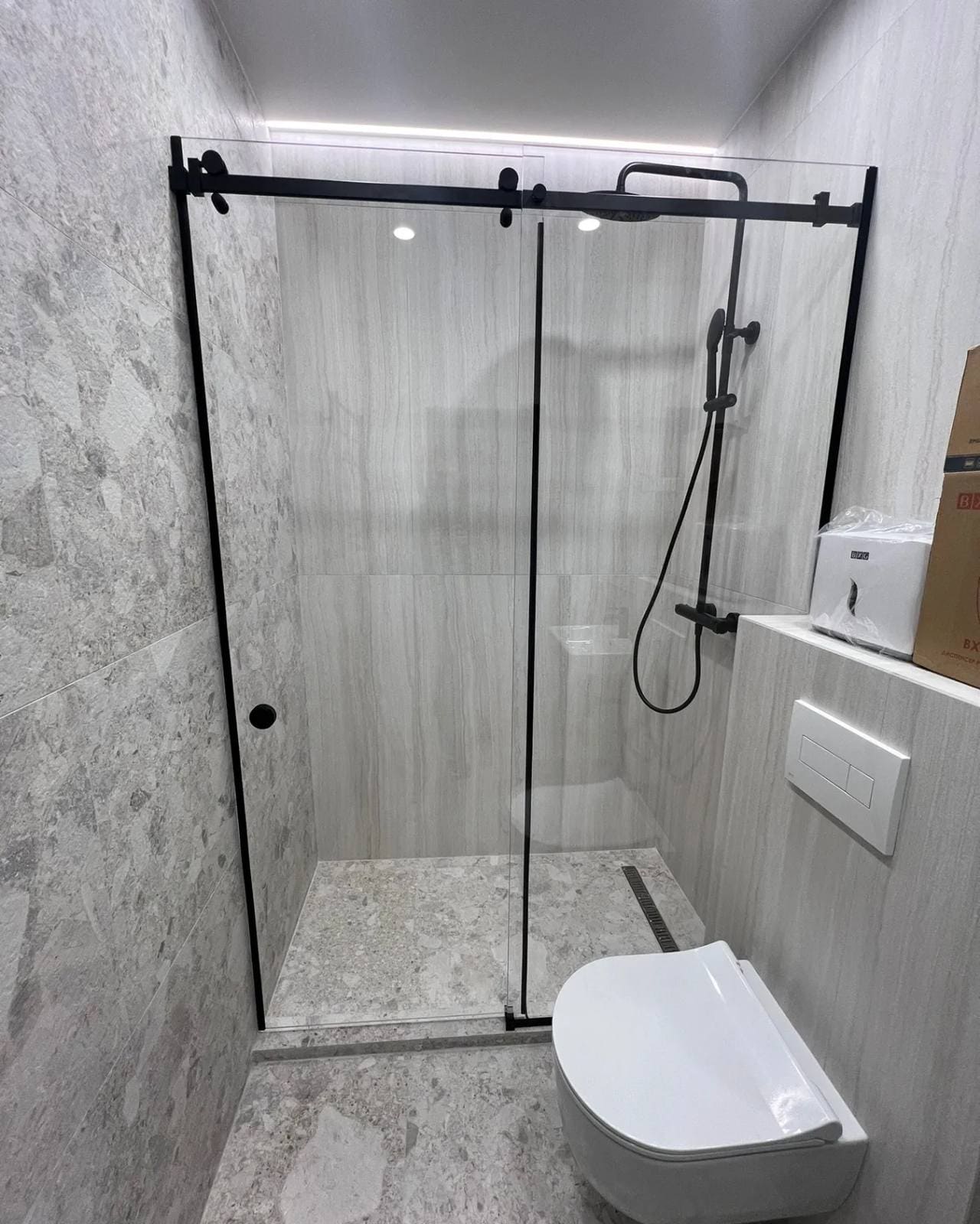 Прямая душевая кабинка с распашной дверкой из стекла