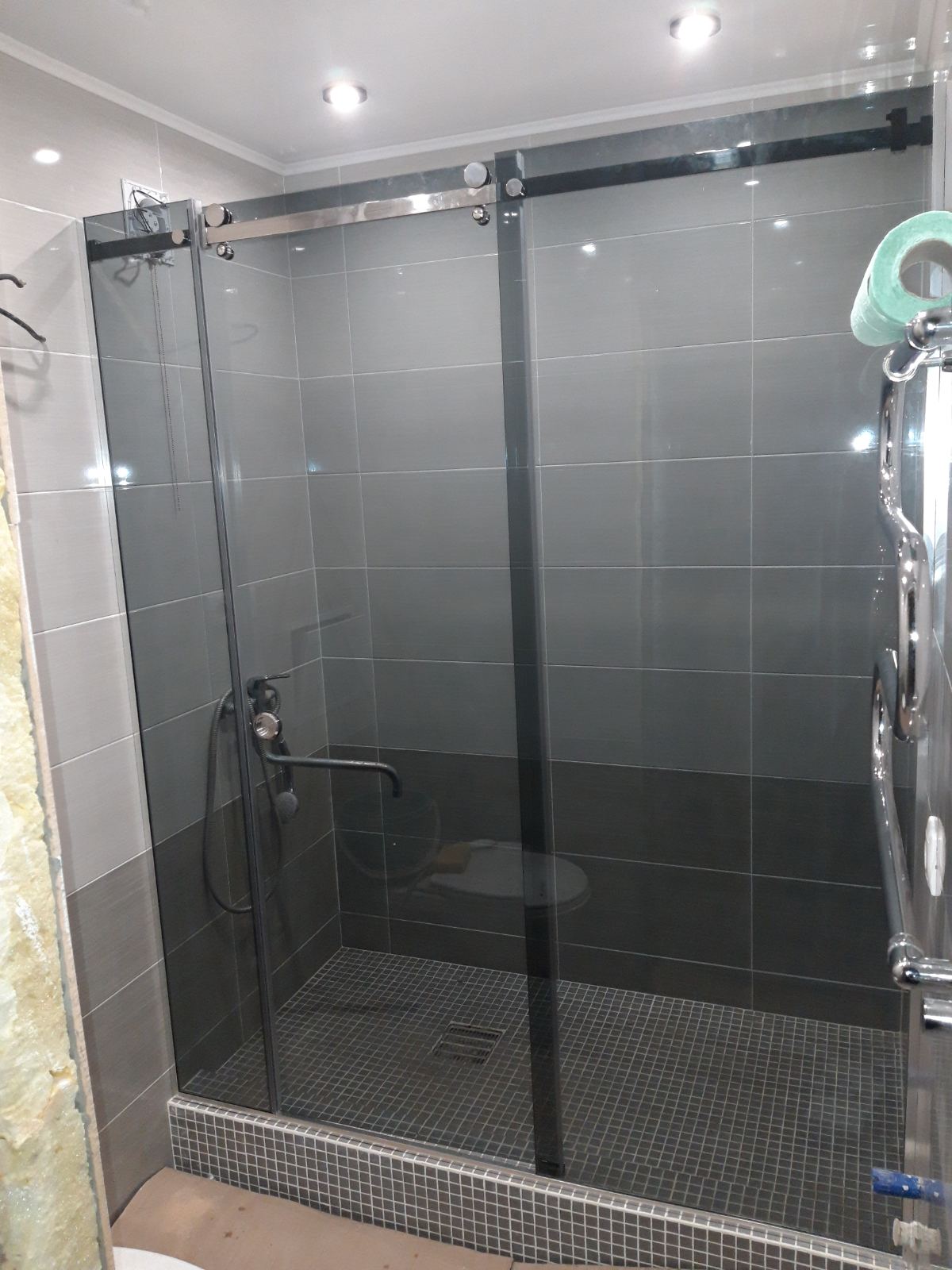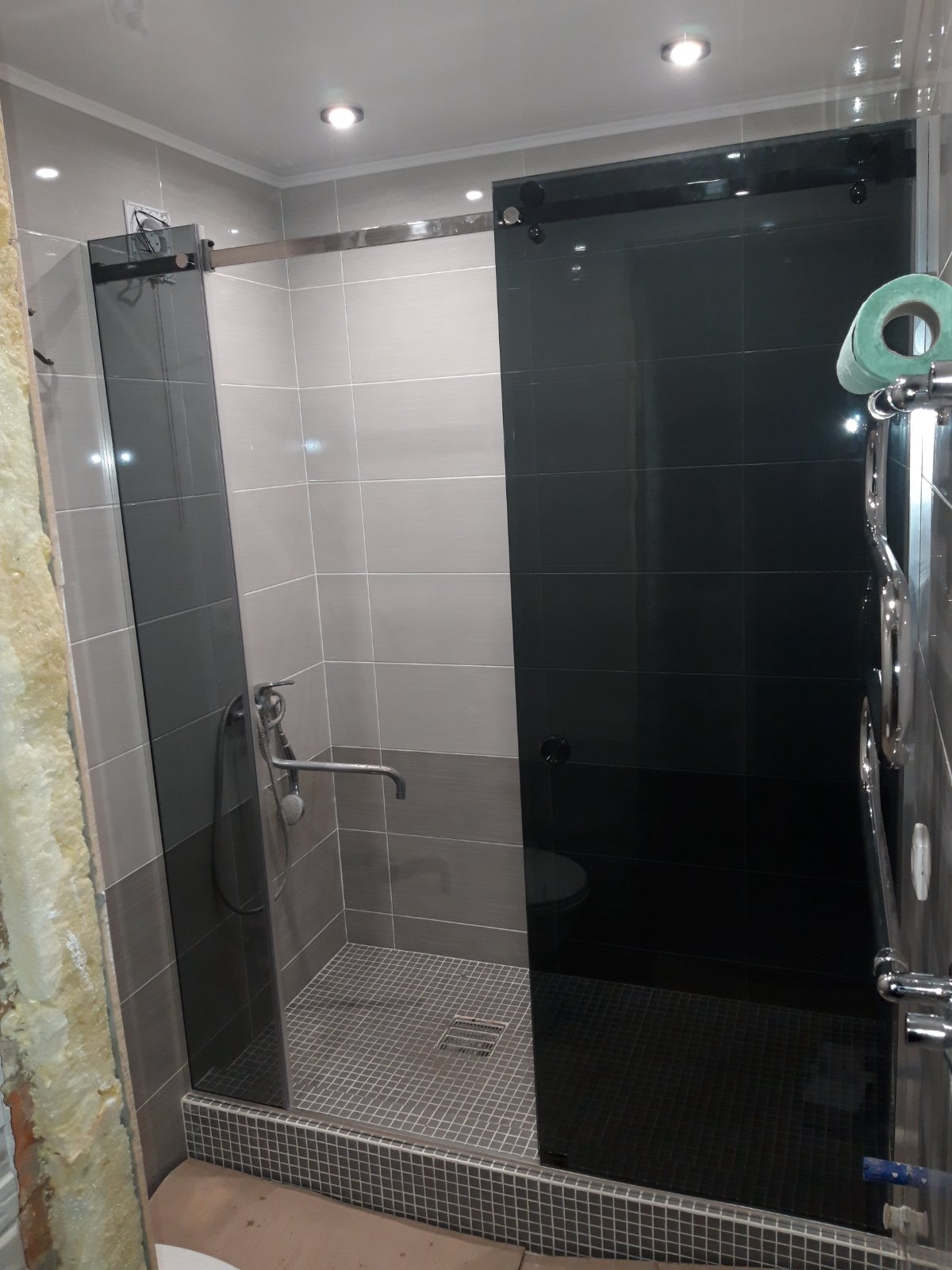Прямая душевая кабина с одной раздвижной дверцей изготавливается из закаленного стекла толщиной 8мм под заказ. Индивидуальные размеры проема между стен и предпочтения Заказчика позволяют реализовать различные варианты открывания раздвижного механизма в любую сторону для комфортного использования. Раздвижная дверь не только удобна, но и эргономично задействует пространство помещения, избавляя от риска случайно зацепить рядом стоящую стиральную машину или другие элементы небольшого санузла.