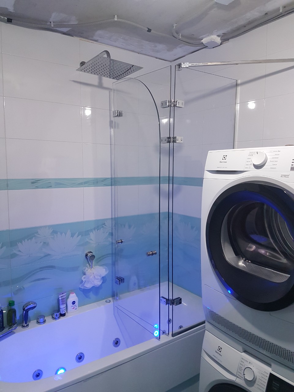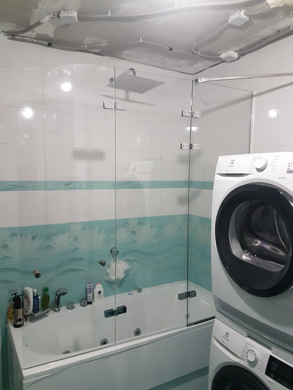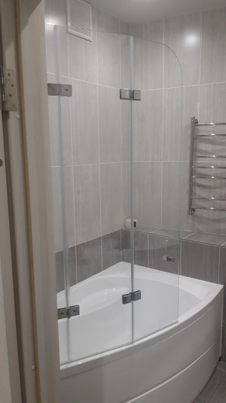 Двухстворчатая шторка для ванны с радиусным углом из стекла