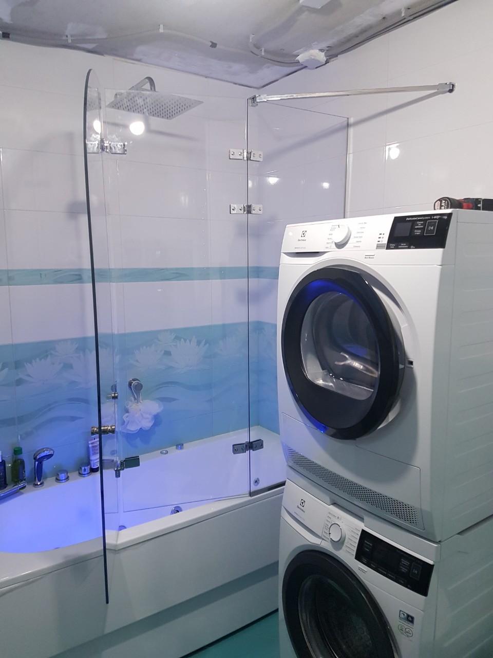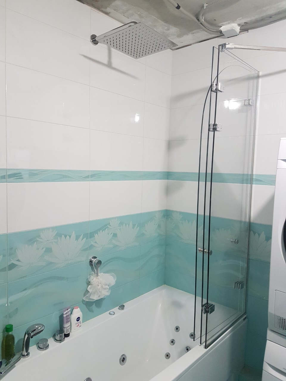 Г-образная раздвижная/распашная штора для ванны из стекла