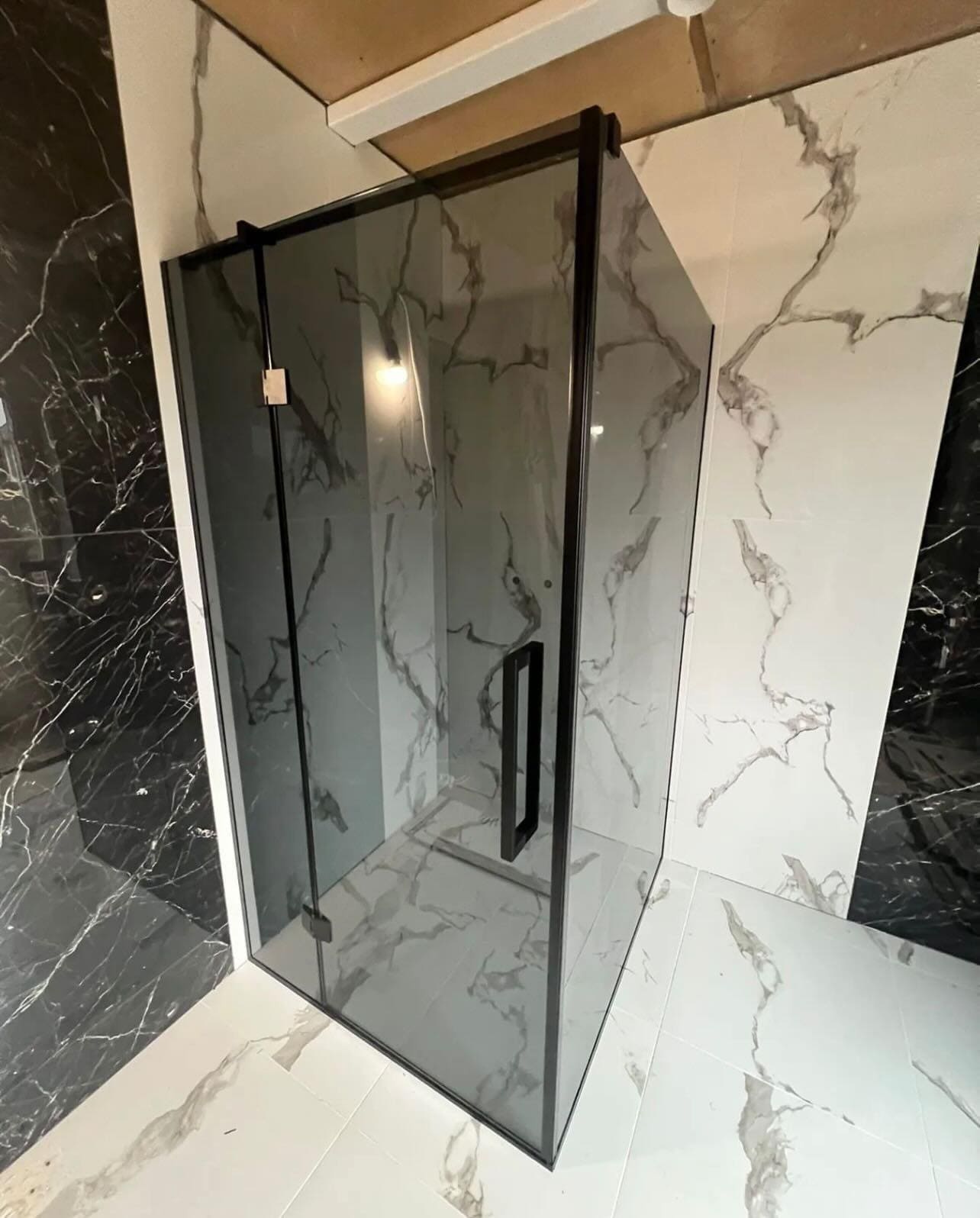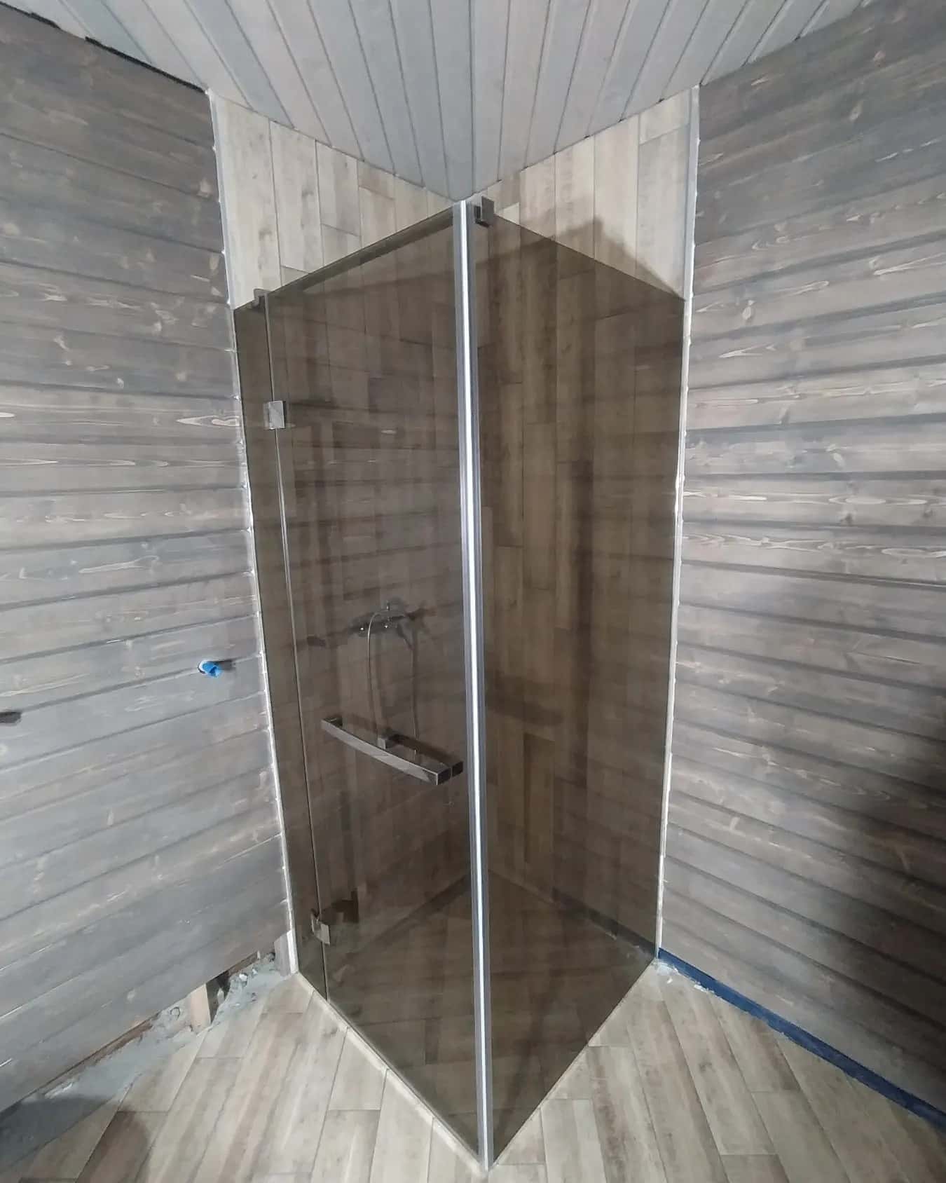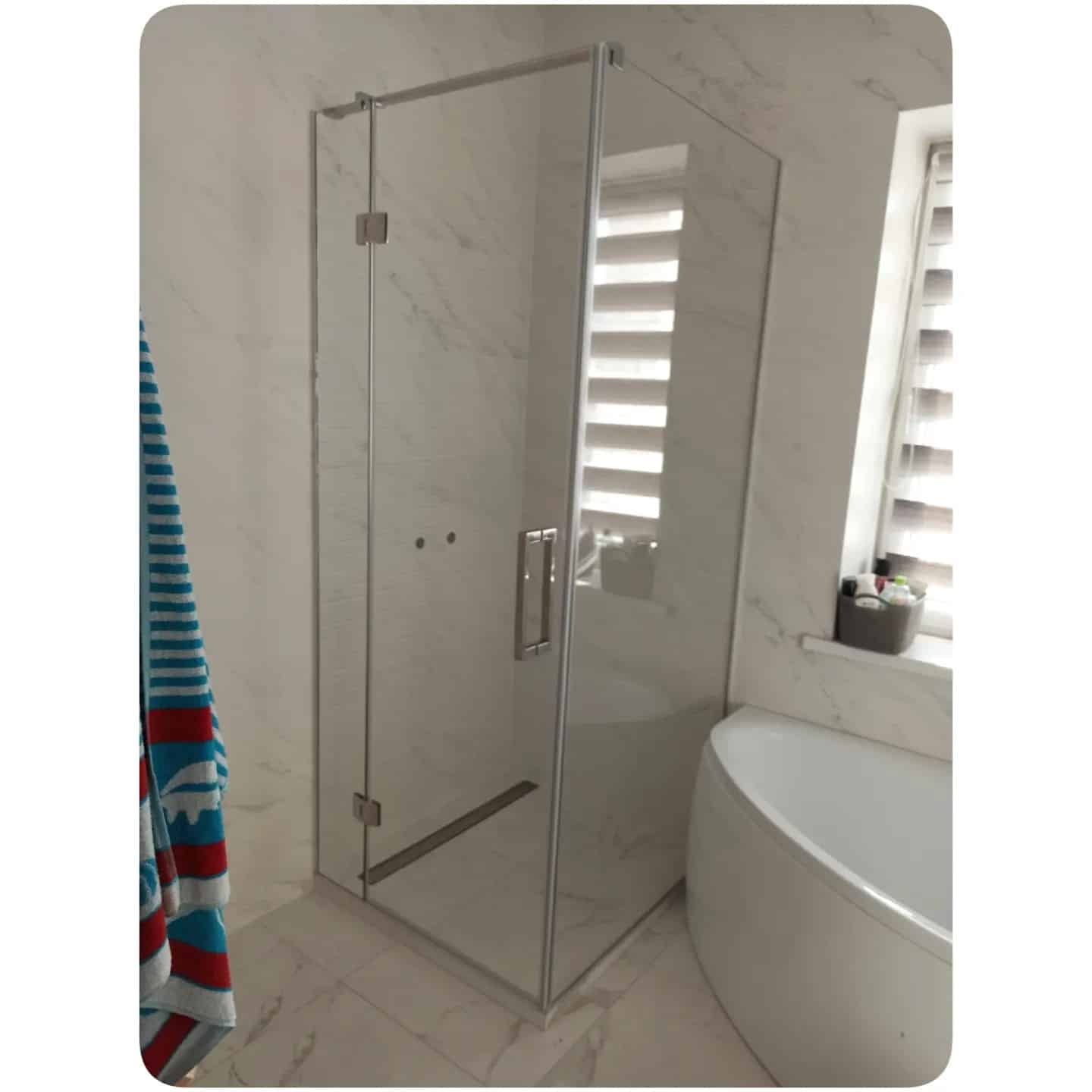 Угловая душевая кабина из стекла с добором