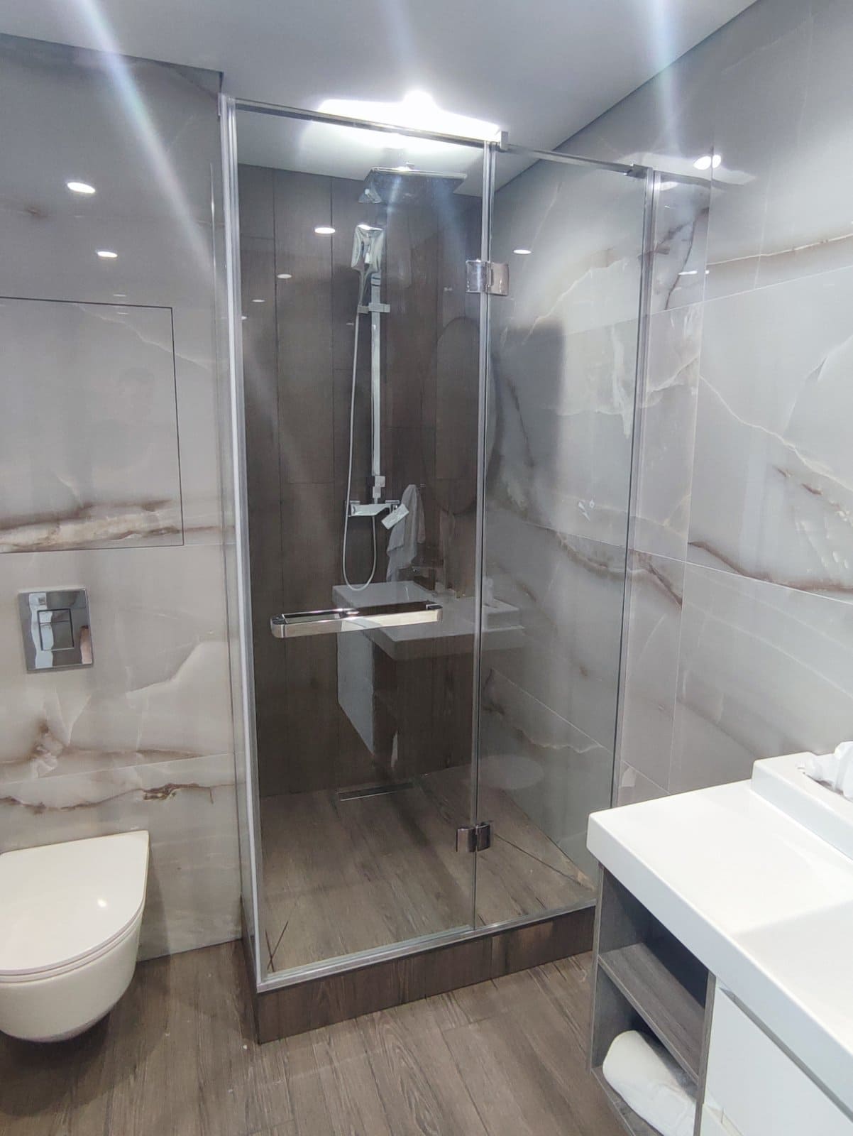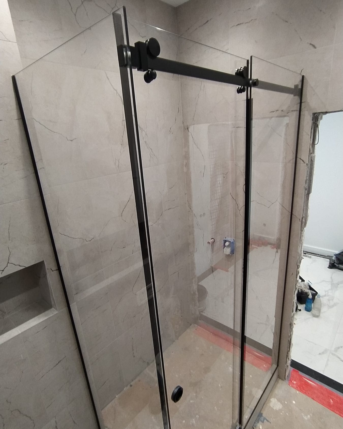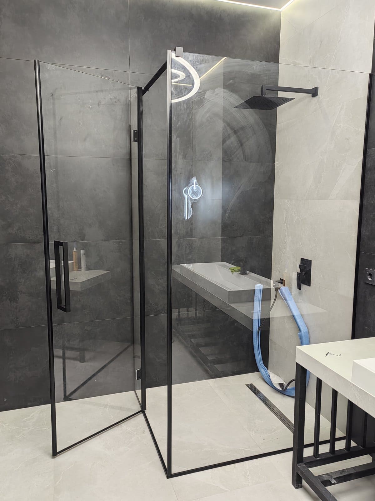 Угловая душевая кабина из стекла с добором